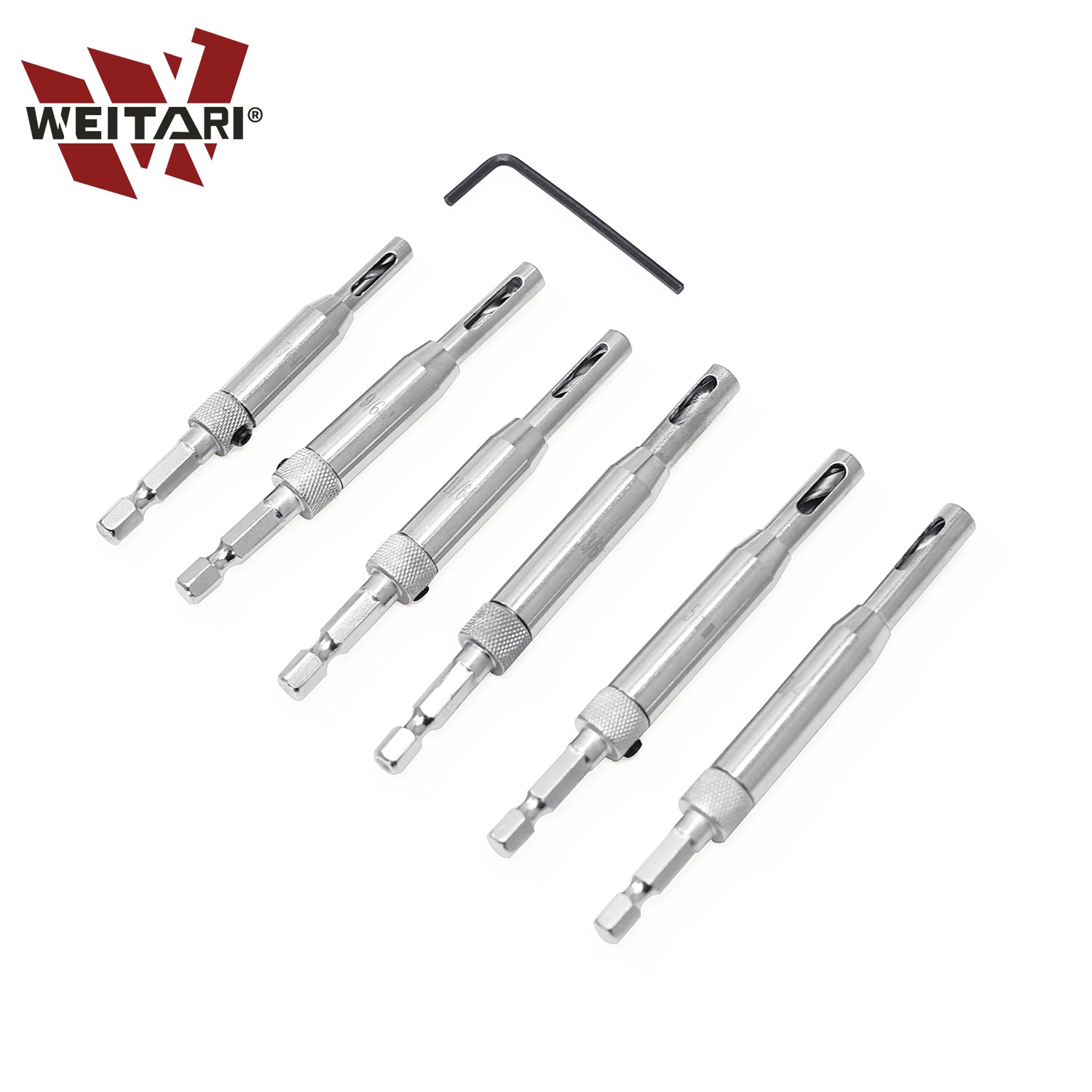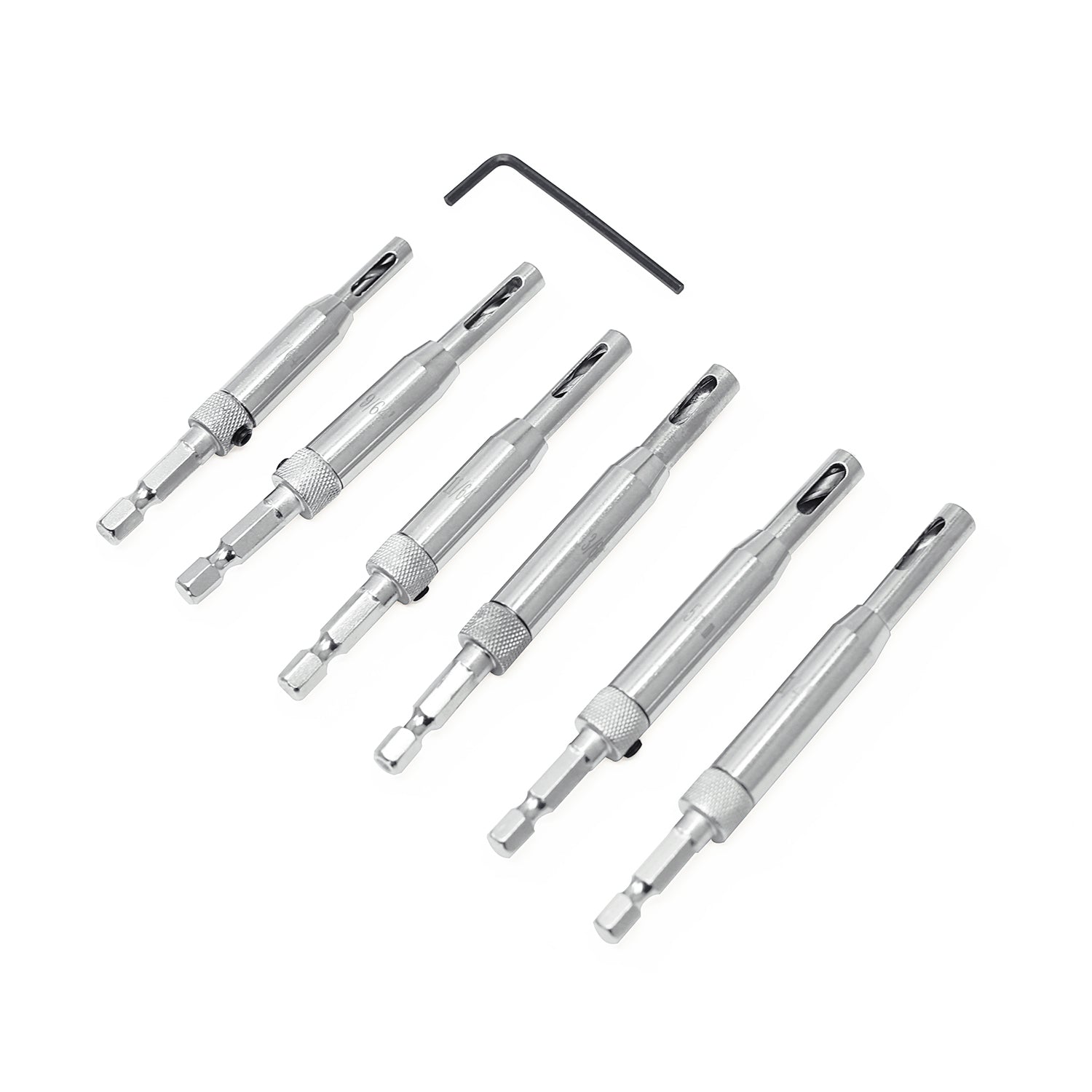 WEITARI 7pcs Self Centering Drill Bit with Hex Key, Hinge Set Tools Hole Alignment Bits 5/64'' 7/64'' 9/64'' 11/64'' 13/64'' 5mm 1/4'' for Woodworking Steel Metal
