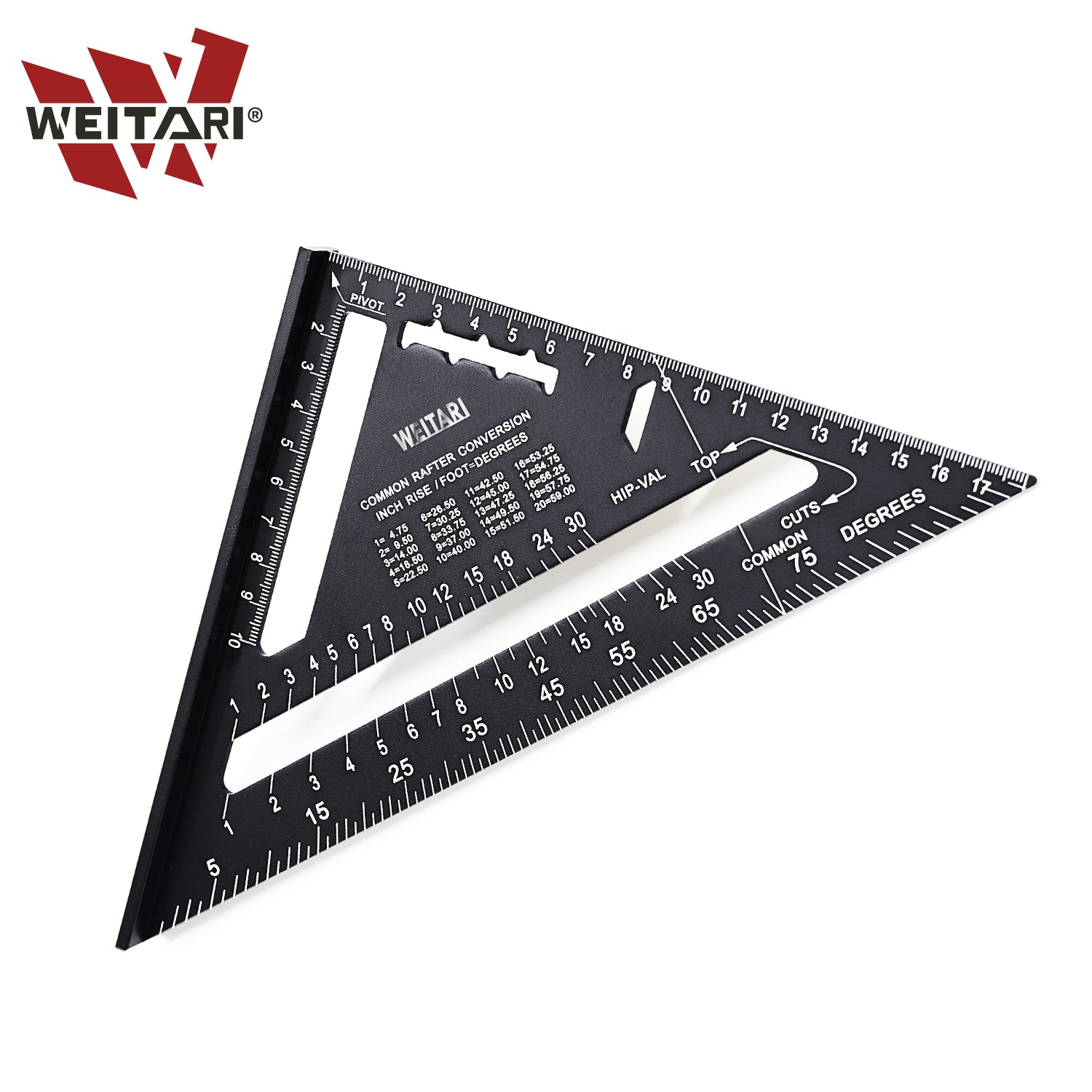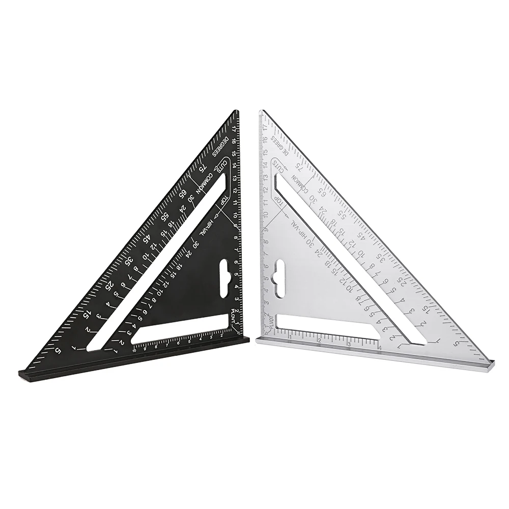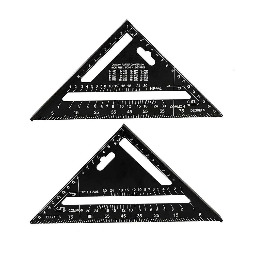 WEITARI 7 inch Rafter Square Triangle Ruler Angle Ruler Aluminum Alloy Double Scale Carpenter Triangle Square Rafter Tool Mensurement Tool for Woodworking and Carpentry