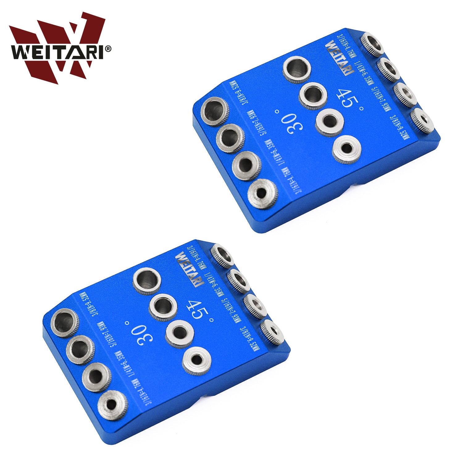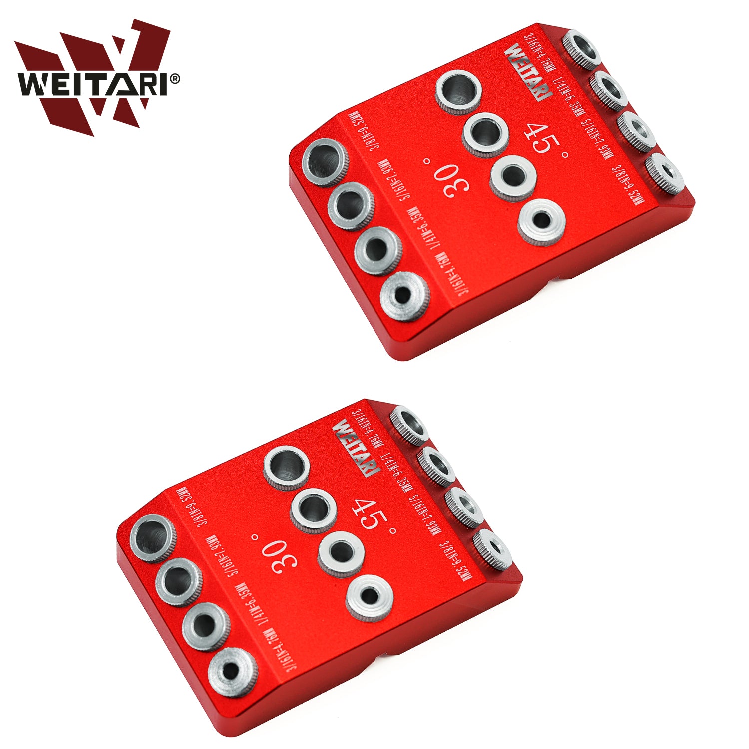 WEITARI® Drill Guide Jig, 4 Bits for Straight and 30 45 90 Degree Angled Holes, 4 Sizes All Metal Jig for Stairs Handrail, Cable Railing, Deck, Wood Post and Lag Screw