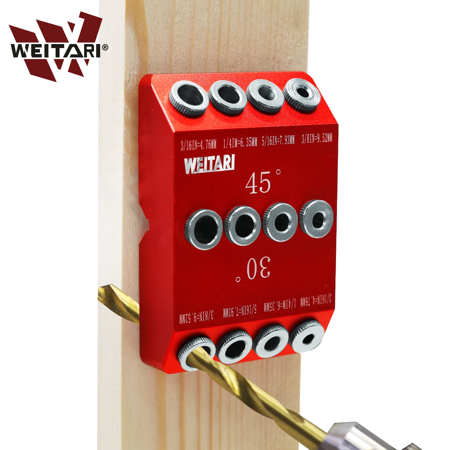 WEITARI 30 45 90 Degree Angle 4 Sizes Drill Hole Guide Jig for Angled and Straight Hole, Portable Deck Cable Railing Lag Screw Drilling Template Block For Horizontal Cable Wood Post,Stair Wire Handrail.
