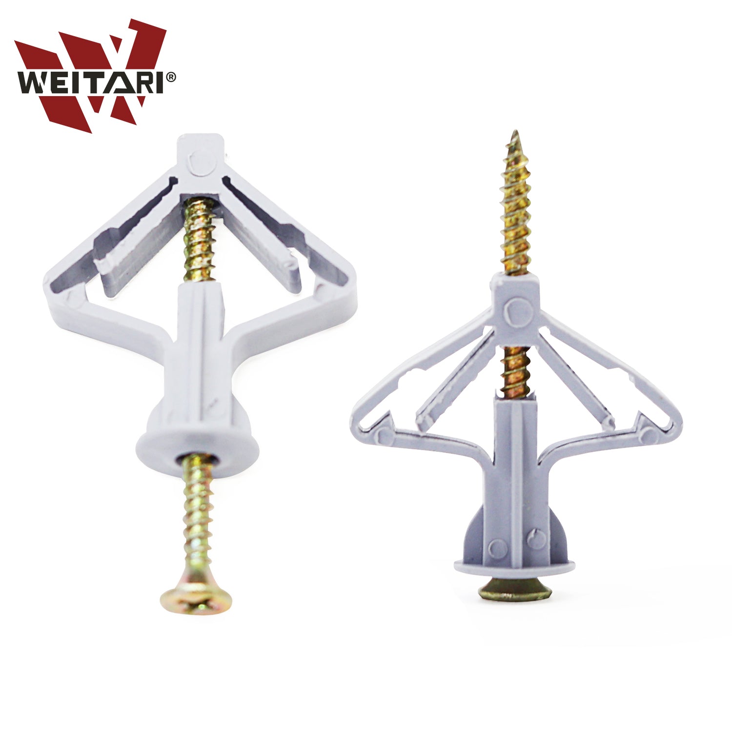 WEITARI Grey Drywall Anchor Kit with Screws Hollow Wall Anchors 100pcs self Drilling Drywall Anchors Plastic Aircraft Anchors with Screws (Anchor 50pcs + Screws 50pcs)